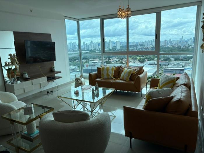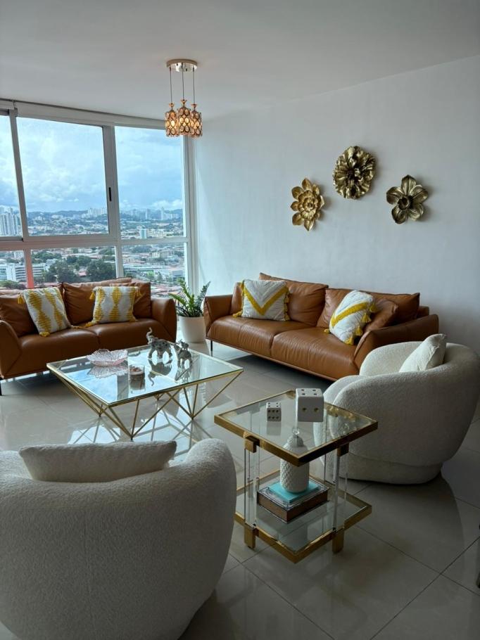 Alquiler apartamento amoblado ph top tower Te presentamos un exclusivo y moderno apartamento ubicado en la ciudad de panamá, en la república de panamá. este inmueble cuenta con una amplia área privada de 145 m2, distribuidos en 3 cómodas alcobas y 2 baños, perfecto para satisfacer las necesidades de una familia o pareja en busca de un lugar cómodo y espacioso para vivir. este apartamento cuenta con todas las comodidades que puedas imaginar. en primer lugar, cuenta con aire acondicionado para que puedas disfrutar de una temperatura perfecta en cualquier momento del día. además, está completamente amoblado, por lo que podrás mudarte de forma inmediata y sin preocupaciones. y por si fuera poco, cuenta con calentador de agua para que siempre tengas acceso a agua caliente en los momentos que lo necesites. también podrás disfrutar de una impresionante vista panorámica desde el apartamento, para que puedas relajarte y disfrutar de la hermosa ciudad de panamá desde la comodidad de tu hogar. además, cuenta con una zona de lavandería para que puedas realizar tus tareas domésticas sin salir de casa. este apartamento es un adosado, lo que te garantiza privacidad y tranquilidad en todo momento. además, cuenta con acceso a los servicios básicos de agua y electricidad para que no tengas que preocuparte por nada más que vivir en plenitud en el lugar que siempre soñaste. en cuanto a las características externas, este apartamento cuenta con una amplia área social para que puedas compartir momentos inolvidables con tus seres queridos. además, cuenta con ascensor para que puedas acceder al apartamento sin necesidad de subir escaleras. se encuentra cerca de la zona urbana y cuenta con cochera o garaje para que puedas proteger tu vehículo de forma segura y cómoda. otro gran beneficio de este apartamento es su cercanía a diversos parques, para que puedas disfrutar de la naturaleza y realizar actividades al aire libre en cualquier momento del día. y para garantizar tu seguridad, cuenta con portería o recepción y vigilancia las 24 horas del día, en una zona residencial tranquila y segura. no pierdas la oportunidad de adquirir este increíble apartamento en una de las mejores ubicaciones de la ciudad de panamá. ¡contáctanos ahora mismo y agenda una visita para que puedas conocerlo en persona y enamorarte de él! ¡te esperamos!