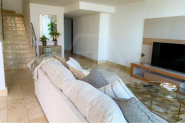 Alquiler de apartamento tipo loft en punta pacífica, ciudad de panamáAlquiler de apartamento tipo loft, tiene una superficie de 214 metros cuadrados, ofreciendo un amplio espacio para una cómoda vida. este tipo de vivienda se caracteriza por su diseño abierto y moderno, proporcionando una sensación de amplitud y luminosidad.consta de dos habitaciones, lo que brinda la posibilidad de tener espacios privados y versátiles. los dos baños completos y un medio baño añaden comodidad para los residentes y sus invitados. además, incluye un cuarto y baño de servicio, lo que permite tener un área independiente para el personal doméstico o como espacio adicional.el apartamento cuenta con dos puestos de estacionamiento, lo que facilita el estacionamiento de vehículos de los residentes o visitantes. el apartamento incluye la linea blanca y así ofrece la flexibilidad de decorar y personalizar los espacios de acuerdo a los gustos y necesidades individuales.este loft de 214 metros cuadrados ofrece un ambiente contemporáneo y funcional, con suficiente espacio para una vida confortable y moderna.