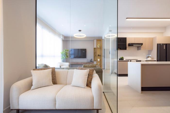 ambiente: amplia sala-comedor, cocina moderna y balcón con vistas panorámicas.