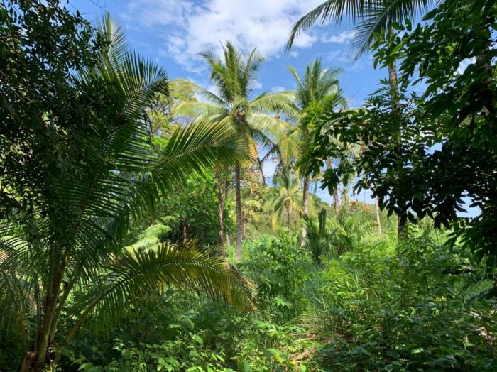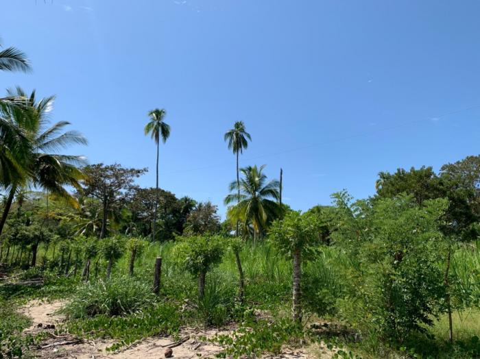 oasis tropical: la propiedad ya cuenta con altas palmeras de coco y vegetación nativa madura, ofreciendo sombra natural, frescura y esa estética caribeña/pacífica inmediata sin tener que esperar años a que crezcan los árboles.