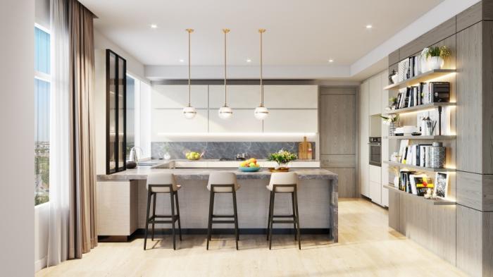 cocina italiana de diseño moderno y área de lavandería.
